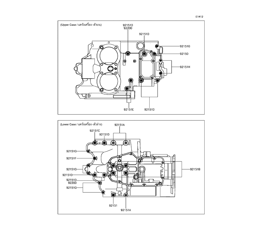 Crankcase Bolt Pattern / แคร้งเครื่องยนต์แบบแสดงตำแหน่งน็อต