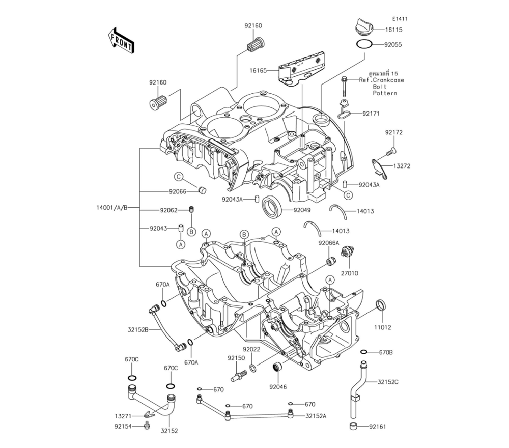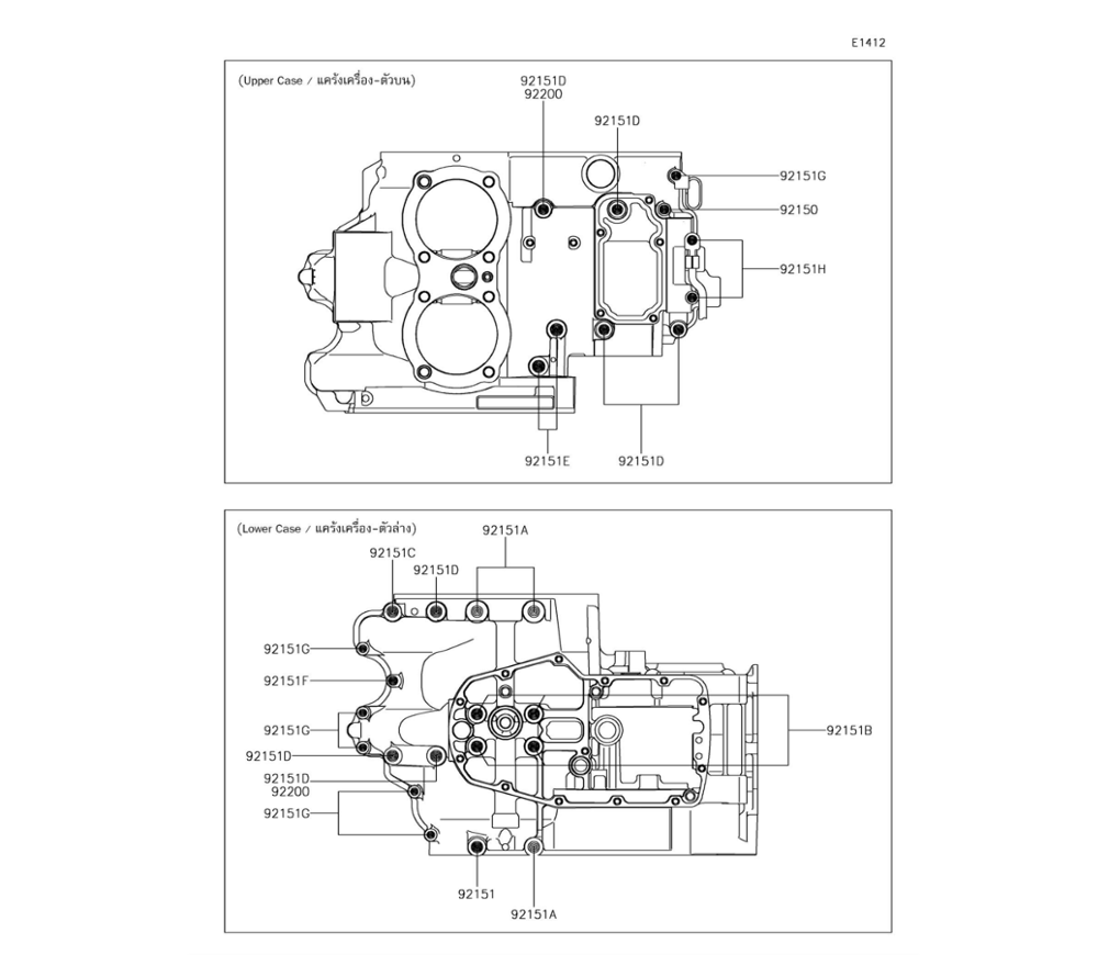 Crankcase Bolt Pattern / แคร้งเครื่องยนต์แบบแสดงตำแหน่งน็อต